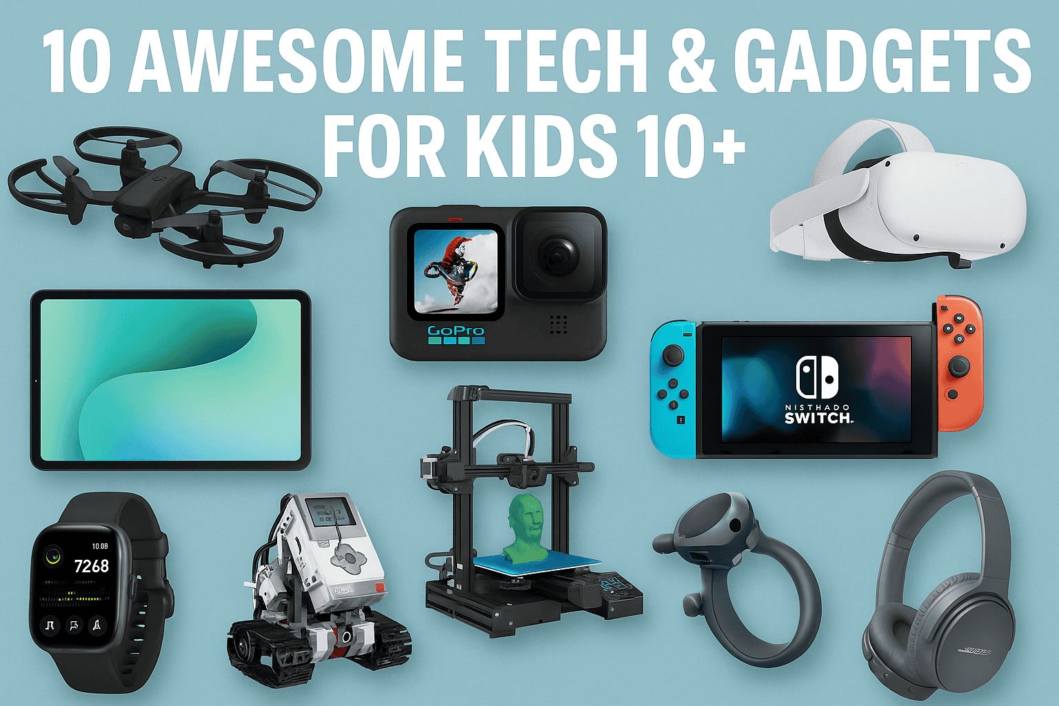 If you’ve got a 10-year-old (or older) at home, you already know how tricky gift giving can get. They’re too big for the “little kid” toys, but not quite teens yet—and they want things that feel cool. I’ve been there, and I know the struggle! That’s why I put together this list of tech gadgets that are fun, durable, and guaranteed to give you that big “wow” moment when they unwrap it. I’ve included some big ticket splurges (for when you want to go all out) along with more affordable options that are still really awesome.