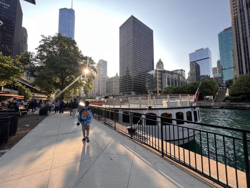 We all know that teenagers are not always willing to walk per miles. You don’t have to do that when you visit Chicago. There is so much to see, but if you want to take it easy yet still have fun, this is an excellent alternative. We were really fortunate with our tour. The boat has a snack bar and great view. We chose our trip around sunset, and it was an excellent way to begin our vacation. Incredible our tween and teen were off their phone besides from taking pictures!