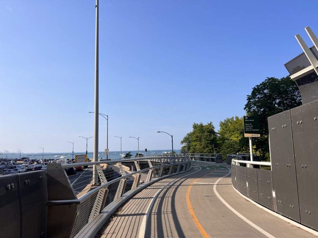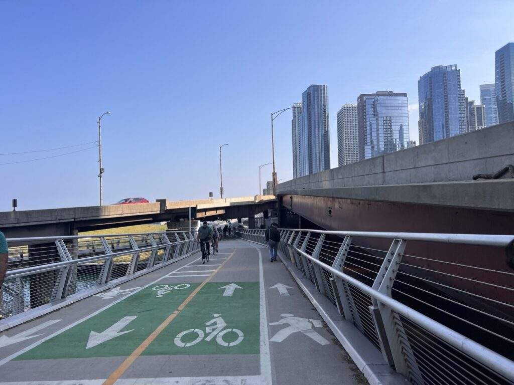 Lake front trail is the scenic trail that runs for about 18 miles in the Lake Michigan. Cross the Chicago’s navy Pier. You can go for a stroll and looks at scenic or you can ride a bike that are for rent. We walk long part of this.