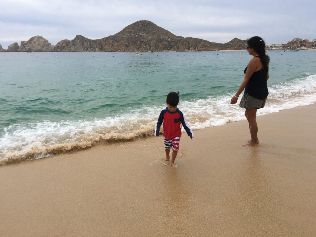 Cabo’s coastline is beautiful, but a lot of areas have strong currents, so not every beach is safe for swimming (especially with kids).