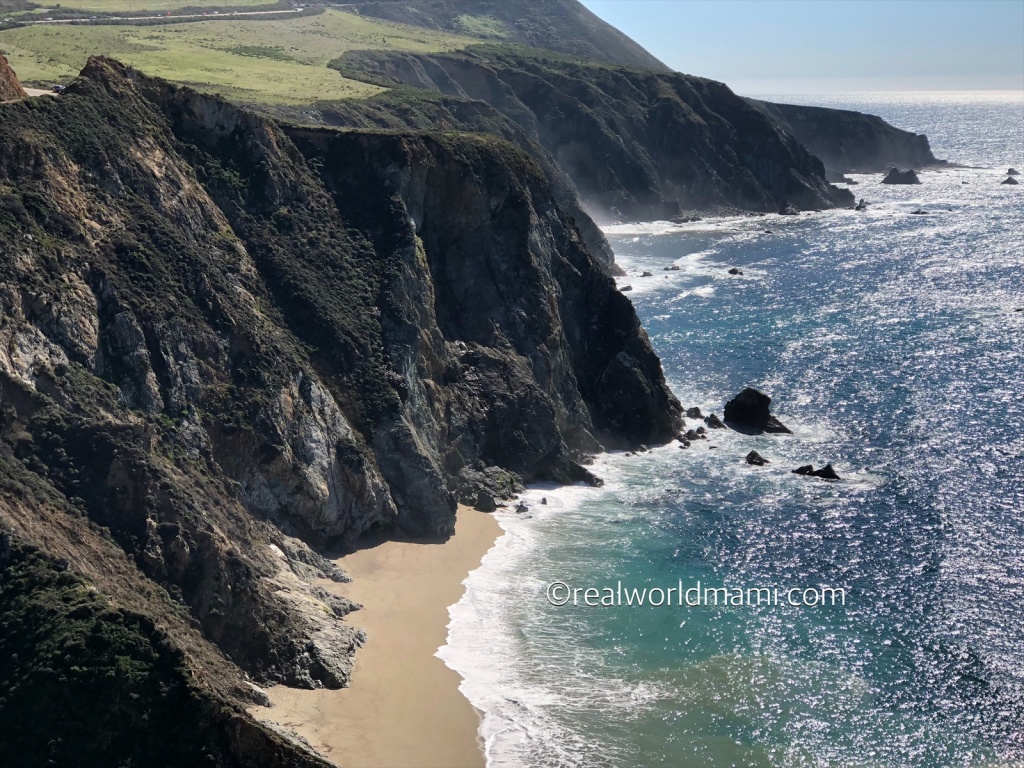 Unfortunately, they don’t actually let you go down and splash around under the McWay falls. It’s a steep climb down some almost vertical cliffs to get there, and they have yet to put in an elevator. It may be possible to access it via rubber dingy or something from the ocean, but as a tourist arriving by car, the best you’ll do is to gawk at it from a trail which runs along the northern side of the inlet, a few hundred yards away form the falls themselves.