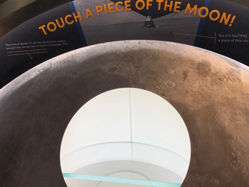 One of the most unforgettable (and surprisingly emotional) moments of our trip was watching my kids reach out to touch an actual piece of the moon. Yes — a real lunar rock brought back from the Apollo 17 mission is on display and you’re allowed to touch it! It’s one of the only moon rocks in the world available for public interaction.