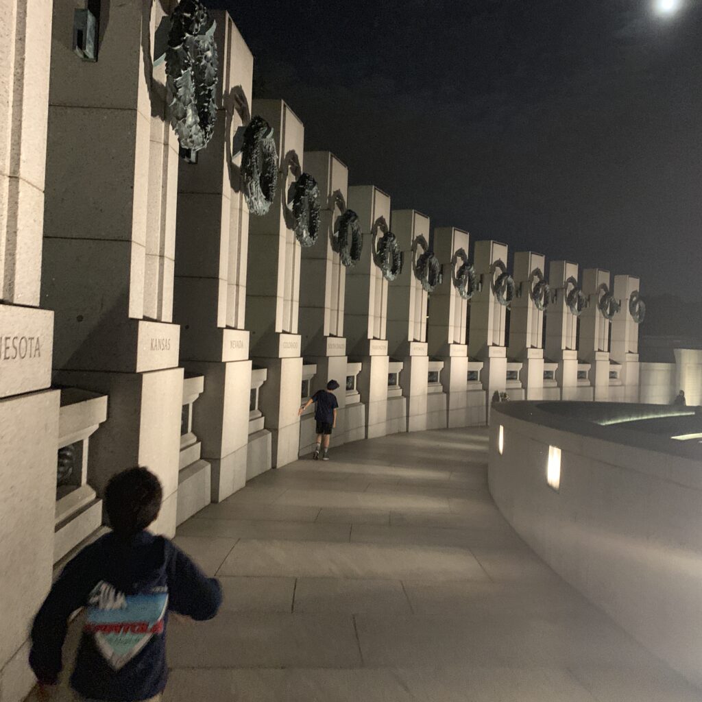 After so much fun our first evening at the Lincoln Memorial, and honestly, watching the sunset there was magical. My kids were awestruck by the sheer size of Lincoln’s 19-foot statue — and they loved running up and down the steps (58 from chamber to plaza level, if you’re counting). What really gave me chills was showing them the exact spot where Martin Luther King Jr. delivered his “I Have a Dream” speech. That moment hit home for all of us — and it’s something they’ll always remember.