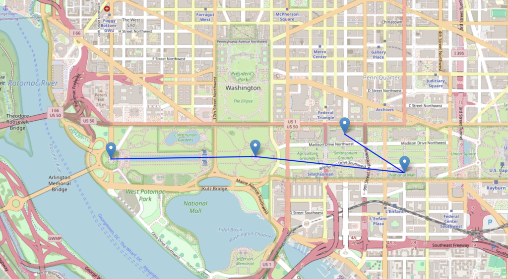 🕒 Approx. 15-minute walk - Washington Monument → Lincoln Memorial: