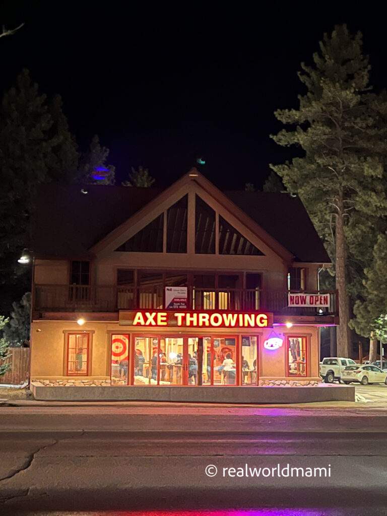 I didn’t included this in our weekend South Lake Tahoe Itinerary but walking down the street at from Heavenly Village, we found an axe throwing joint! I have never tried it, and had we not been so exhausted from our day on the mountain, we surely would have. It’s on the list!