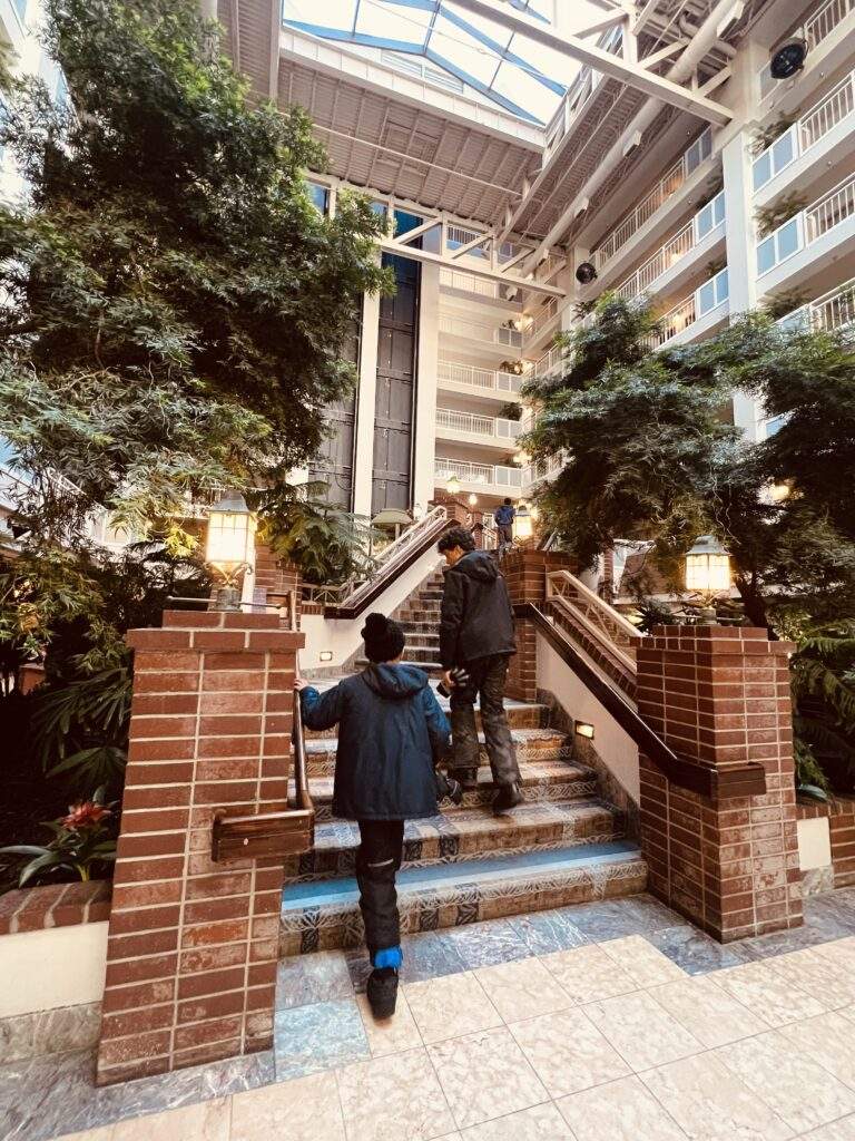 After driving a few hours we were happy to settle into the hotel, where every room is a suite and we felt really comfortable. The interior of the hotel is basically a huge atrium and boys loved the glass elevator with a view.