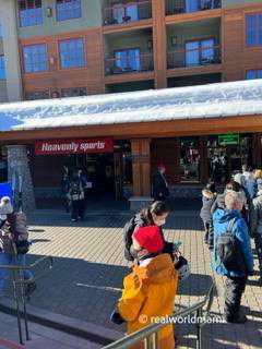 The next day, we grabbed breakfast early at our hotel, the Lake Tahoe Resort Hotel (where every room is a suite, and breakfast is included!). After that, we walked to the village to pick up our ski and snowboard gear at Heavenly rentals. There was already a line when we arrived, but there was enough people to help, and we were done picking up our equipment in about 30 minutes or so, from start to finish. The staff is friendly and helpful, and really take the time to make sure all your gear fits well. Many of them speak Spanish which was great for me. They are primarily young people that come from a school program during the winter.