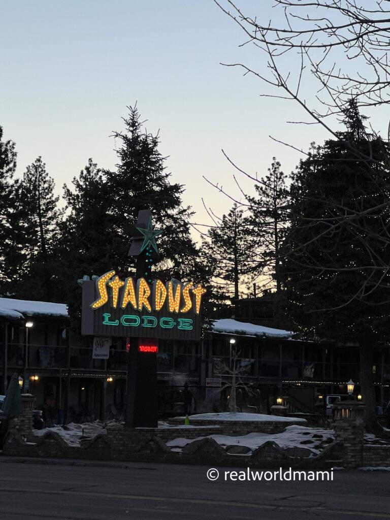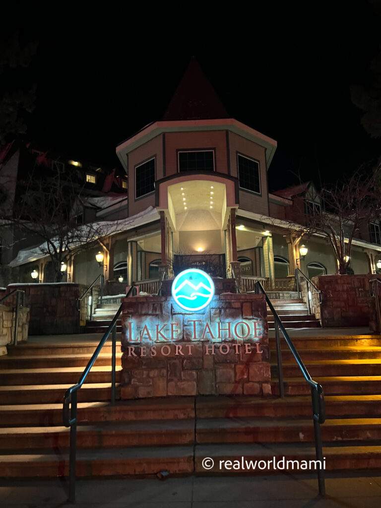 There are many different places to stay, but we stayed at the Lake Tahoe Resort Hotel, located quite near Heavenly Village. This property has a wonderful proximity (about a 1 block walk) to Heavenly Village which was bustling with activity, shops, restaurants, and even an ice skating rink. You can book this hotel here.