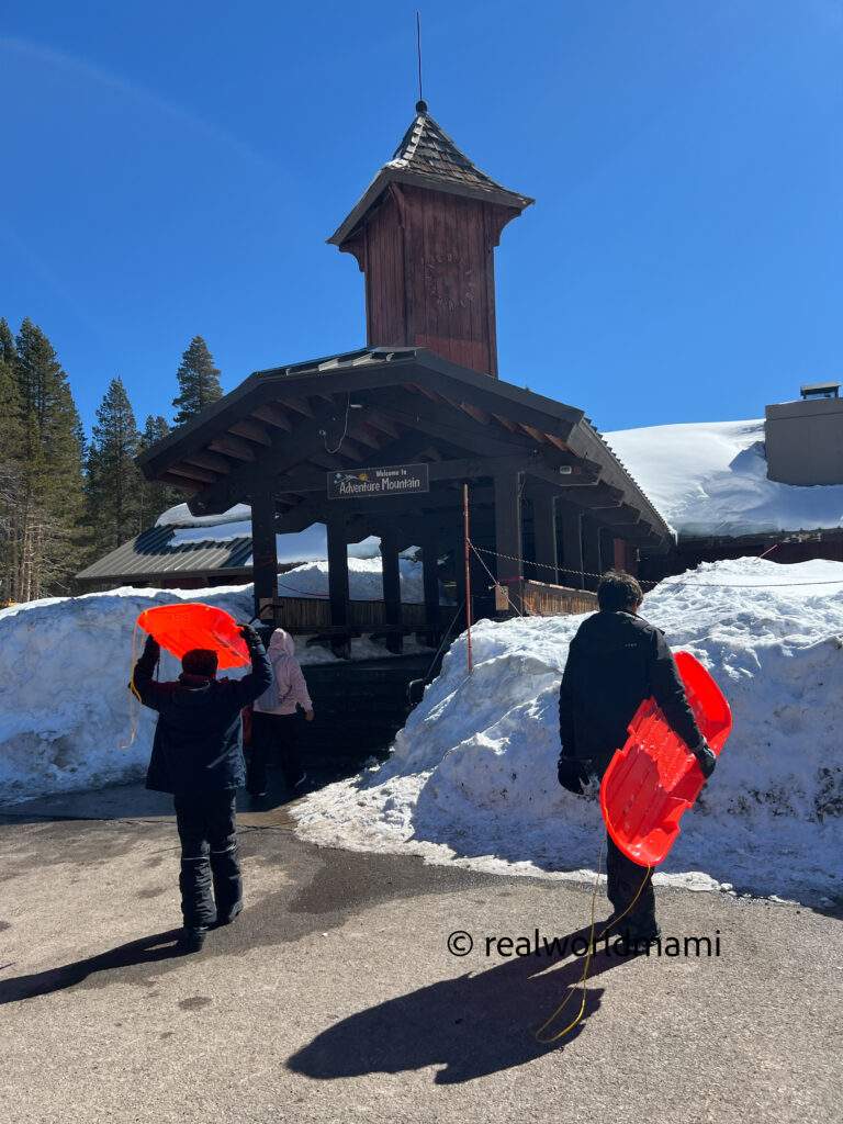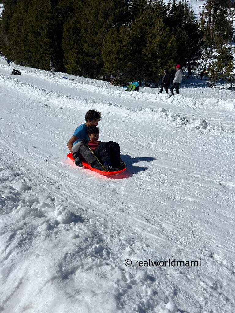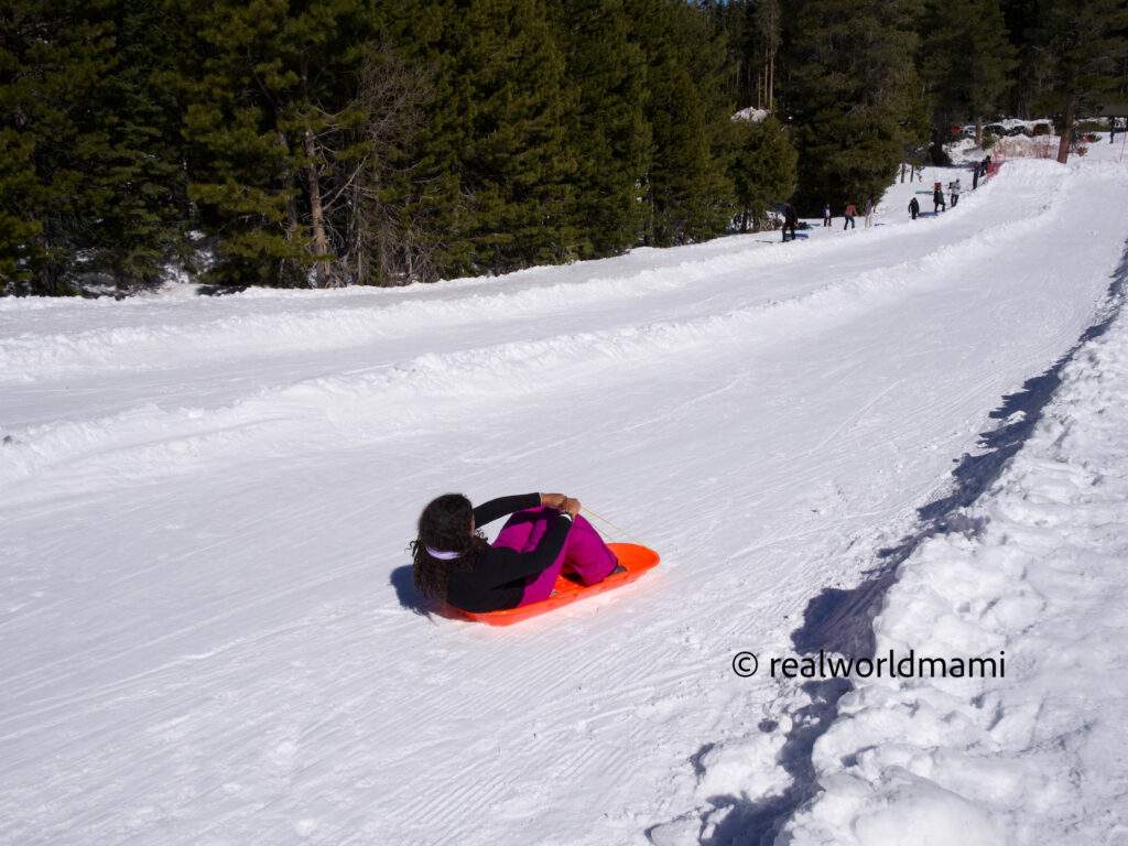 You can rent a sled there for $25 or snow tubes for $35. Plus, there are several hills of differing heights to choose from. I would recommend the snow tubes for long rides and sled for short ones.