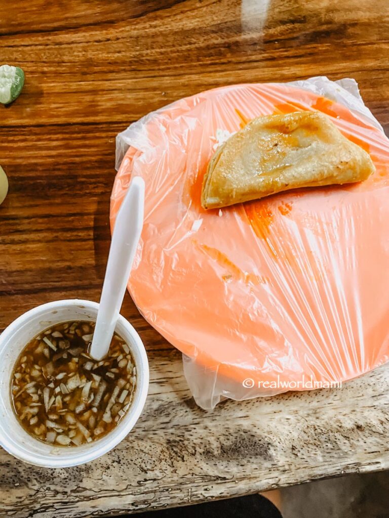 Our second stop was Tacos el Cuñado (cuñado means “brother in law”), named because it was founded by a group of brothers. We tried their delicious Taco Asada. This is a street stand whose ownership has passed through generations since 1968 and it is located in Francisco Rodriguez Street. It has been there for 35 years with the same family recipe and delicious flavor. It is open Monday to Sunday from 9 am to 12 am!