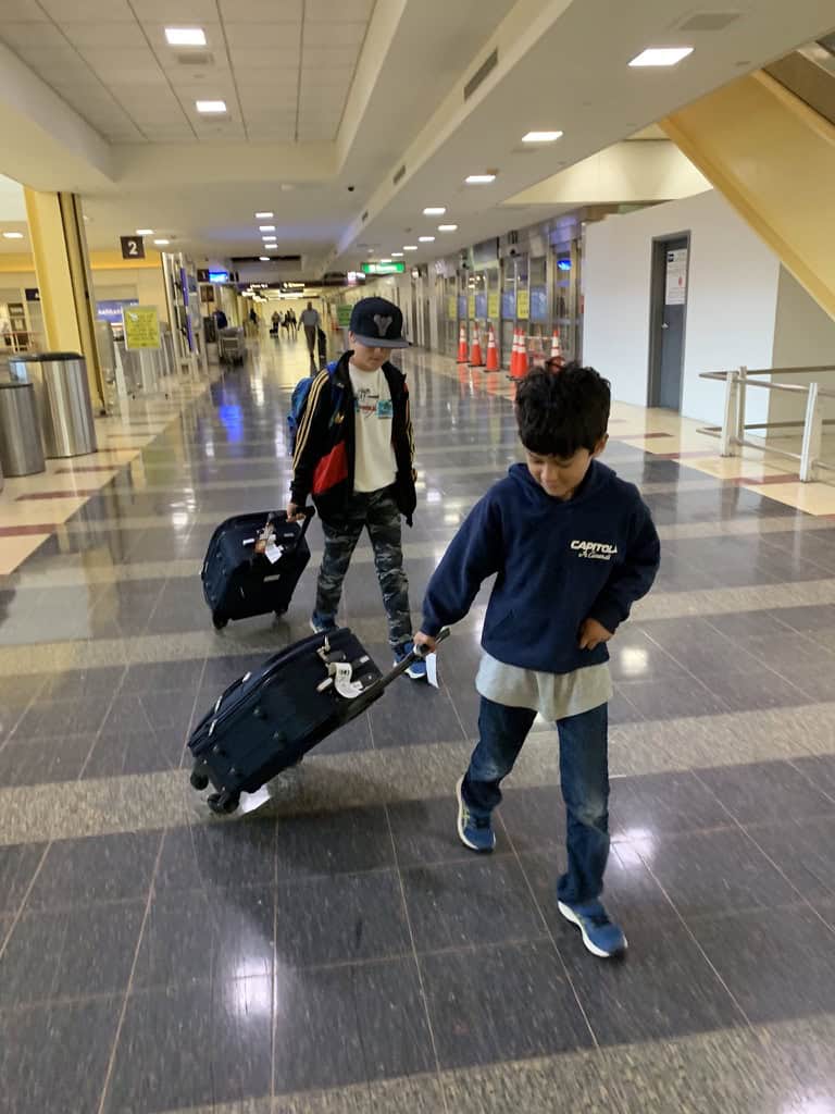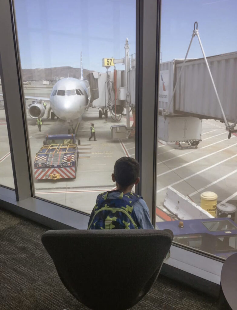 Elementary school kids are easy – both morning and evening flights work. Bring books for the day flight to keep them entertained. If it’s a red-eye flight, set a time limit for them to watch a movie, then turn off the screens to help them sleep.